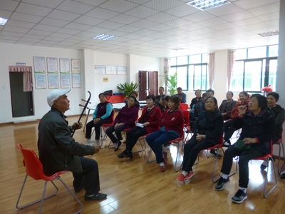 通过前期活动的开展,妇女歌唱小招募到了二十几位固定成员。在社工的倡导下,社区妇女积极的参与到活动中来。正式活动开展前,社工带领小组成员进行了小组游戏活跃了小组气氛,整个活动现场气氛热烈。随后,社工为小组成员播放了经典歌曲。伴随着熟悉的旋律,小组成员们认真的投入到歌曲学唱过程中。活动室内响起了动听的歌声。活动最后,社工邀请社区文艺份子为大家表演了二胡演奏,在美妙的二胡声中,本次歌唱小组活动画上了圆满了的句号。