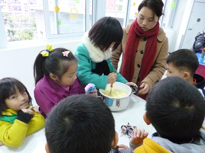 本节活动主要内容是社工和小朋友一起制作蛋糕。首先,社工教小朋友将鸡蛋打在盆里,然后不停搅拌,搅拌过程持续了一个多小时。小朋友们轮流搅拌蛋液,经过漫长的时间,终于,将搅拌好的蛋液放进烤箱。过了几分钟,烤箱飘出了阵阵香味。小朋友们围着烤箱,期待着自己制作的蛋糕。蛋糕出炉了,虽然不是想象中的那么成功,但大家都迟到了自己亲手制作的蛋糕。