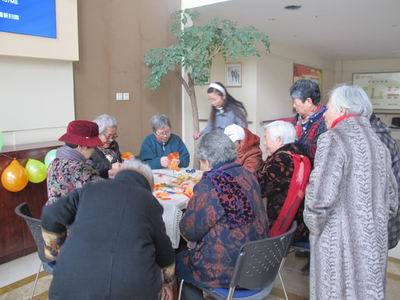 2013年11月28日,成都市田园社工服务中心社工在福利院一楼大厅开展“一人一照片 幸福像花儿一样”暖冬主题活动。