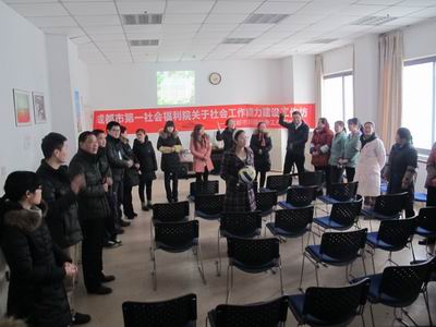 2013年12月2日下午2点半,成都市田园社工服务中心社工在市第一社会福利院一楼音乐活动室组织院职工开展了第一期关于社工能力建设工作坊。