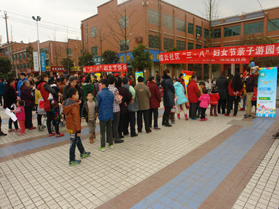 三月绿草如茵,百花齐放,在这暖春到来之际,瑞云社区妇女们迎来了第104届“三八”国际劳动妇女节。为让社区妇女度过一个快乐而难忘的妇女节,2014年3月8日下午,由龙桥镇政府、妇联联合主办,龙桥镇瑞云社区睦邻睦邻中心承办的——“三•八”妇女节亲子游园会活动在瑞云社区广场成功举行。