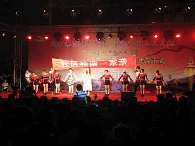 2014年6月27日晚,由空间社工编排,社区“芙蓉花”志愿队伍与社工联袂出演的小品《社区和谐一家亲》在万春镇主办的“七一”晚会暨社会主义核心价值观原创节目比赛上隆重出场。