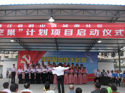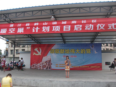 2014年6月26日下午,在蒲江县鹤山镇城南社区活动中心,机构与蒲江县有关部门举行了“暧空巢”计划项目启动仪式。仪式由县民政局和鹤山镇政府主办,鹤山镇文化站、社区教育学院协办,社区两委、田园社工中心城南社区社工站主办。县民政局及鹤山镇的有关领导出席了项目启动仪式。180名社区志愿者参与了活动。