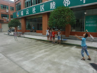 夏天热辣的太阳肆无忌惮的炙烤着大地,睦邻中心的许多活动都不得不改为室内开展。空间的局限性使活动也受到了一定的限制,2014年7月9日,终于引来了凉爽的天气。睦邻中心趁着好天气开展了一次户外羽毛球运动。