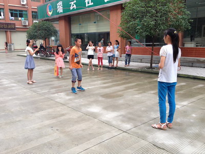在体育教学中,为突出实用性和趣味性,2014年7月11日,睦邻中心组织开展了一次花样跳绳活动,既保证了青少年得到锻炼,又有助于放松身心。
