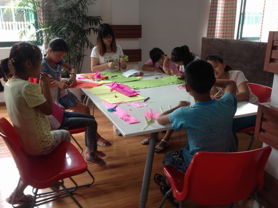 为给青少年创新思维的发展提供了一个较好的实践机会,2014年7月11日,睦邻中心组织开展了手工花制作活动,让青少年得到丰富的感性体验,从而有利于青少年创新思维的培养。
