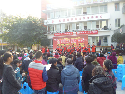 寒冬腊月,冻结了万物却冻结不了暖暖人心。为引起社会对残疾人群体的关注,促进我镇残疾人事业发展,进一步弘扬人道主义精神,宣传扶残助残工作,丰富残疾人精神文化生活。2014年12月21日,由和盛镇党委政府主办,和盛社工站承办,和盛镇残联、文化站、社区教育学校等单位协办的“关爱残疾人·献出一份爱”主题文艺汇演在柳岸社区广场顺利开展。来自高校以及社区居民的各个表演团体倾情奉献了一台精彩的文艺表演,本次活动参与人员达600余人。