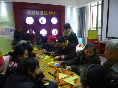 活动的主要内容是由社工向社区居民介绍了各种安全标志的含义,并教居民们手工制作常见的安全标志。首先,社工向居民展示自己事先制作好的几个安全标志,引发居民的学习热情。然后,讲解每一个安全标志的含义,并选择其中最简单的入手制作,由易到难,增加居民的学习兴趣。先是在事先裁剪好的一定大小的卡纸好画出要制作的安全标志的图案,然后沿着线条细致裁剪,接着跟着社工的教学步骤一步一步完成安全标志的制作。由于居民年纪都较大,多为社区的老年人,视力不是很好,很多线条的描绘和裁剪都存在一定的困难,但是在社工的悉心指导下,每个居民都顺利的完成了所教安全标志的制作,每个人脸上都洋溢着满意的笑容。