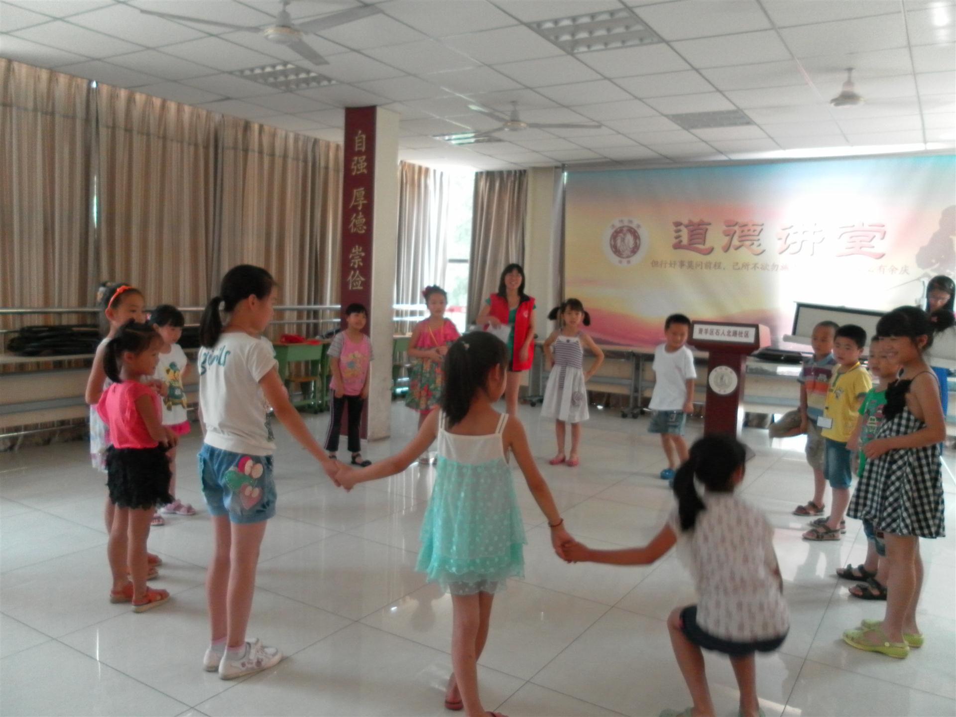 2013年7月5日,在石人北路社区430学校,成都市田园社工服务中心社工开展了以游戏为主题的开放式小组活动。
