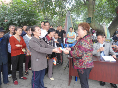 为丰富老年文化活动、营造欢快的生活氛围,歌颂幸福和谐的美好生活,2014年10月9日上午10点,城南社区合唱队的老年志愿者们早早来到了河边公园,就社区六十岁老人开展了一场听曲接歌活动,凡答对者都有一份礼品。