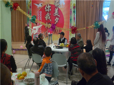 本次活动的参与人员约40人左右,活动开始时,由万春镇李副镇长、王主任为此次活动致辞,深切表达了他们对失独老人的关爱,同时倡导更多的人加入到爱老的队伍当中,让他们感受生活的美好,留下美好的回忆。然后,社工带领在座的老年人进行了互动游戏”表情对对碰“,将最美的瞬间定格,同时“疾病拍拍去”倡导老年人热爱生活,热爱运动,其次,青少年空间的小朋友参与热情高涨,分别为在座的老年人表演了舞蹈、深情的朗诵、以及欢快的歌唱,将现场气氛推向了高潮,接下来的“分享团团座”,许多老年人争先恐后地为包饺子做准备,在场的所有的人都团团座,共同动手包饺子,最后“幸福微微笑”,将活动推向一个新的高潮,小志愿者推上生日蛋糕,全场欢唱生日歌,温馨而甜蜜。