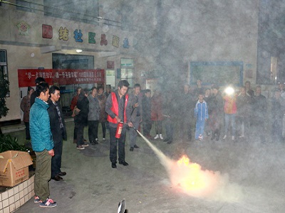 社工为大家示范灭火器使用