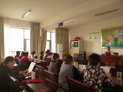 《走向复兴》的歌词对大家来说都比较陌生。所以唱起来比较吃力,但是老师和学生都很有耐心,一句一句的从调子到歌词,再到听伴奏一起唱,反复练习了好几遍。而且社区妇女对待唱歌的态度都比较积极,练习完后还主动找到社工,请社工把歌曲复制到他们的U盘,“回家没事多听,多练下。”